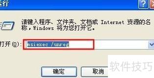 8、 取消注册操作:依次点击开始和运行,在打开框中输入 msiexec /unreg,然后确认执行即可完成。