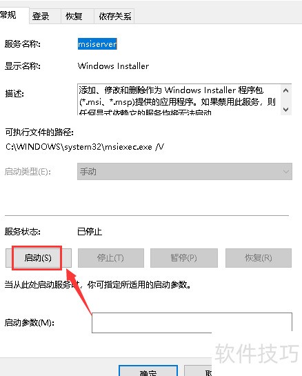 4、 双击打开Windows Installer服务,点击启动按钮以启用服务,具体操作所示。