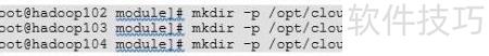 20、 在hadoop102、hadoop103和hadoop104三台主机上分别创建/opt目录。