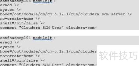 2、 在hadoop102、hadoop103和hadoop104三台主机上分别创建名为cloudera-scm的用户账户,确保每个节点都完成相同的操作配置。