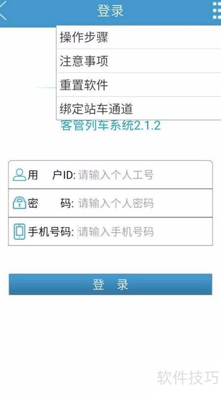 7、 选择站车通道并确保手机已连接该网络后,进入下一页可直接进行第二步绑定操作。随后跳转至登录页面,输入工号、密码及手机号即可完成登录。如忘记密码,请联系单位系统管理员获取帮助。整个流程简便快捷,便于快速接入系统。