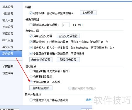 8、 进入高级设置,找到自动更新选项,将其关闭即可。