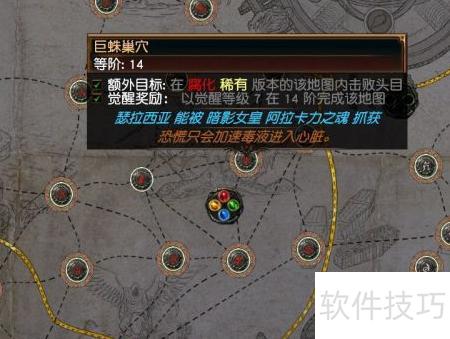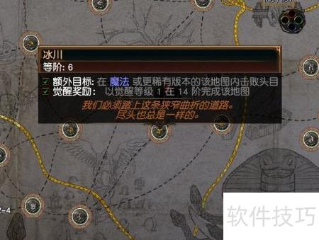 5、 插入相应数量的守望石后(不限区域),查看当前区域地图等级,所示。只有刷对应等级的地图,才可能触发新的征服者势力任务,并获得新的守望石。