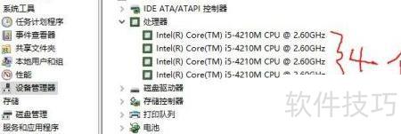 1、 查看电脑核心数:右键我的电脑→管理→设备管理器→处理器,即可查看处理器信息。