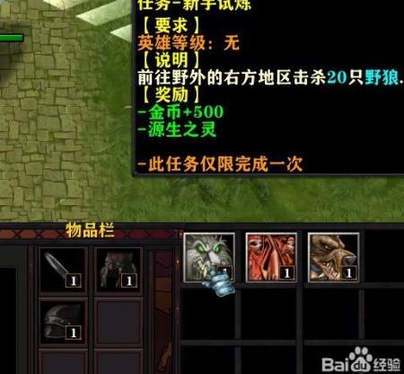 5、 点击首排首个图标接任务,右行杀狼完成目标获取特殊道具,再通过刷怪解锁高级装备。