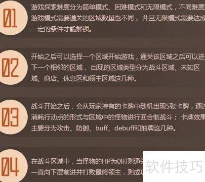 5、 游戏提供简单、困难和无限三种难度,各模式需通关的区域数量不同,其中无限模式需满足特定条件方可解锁。开局可选择任一区域进入,每完成一个区域即可推进至相邻区域。地图中随机生成战斗区、未知区、商店、休息区及领主区等多种类型,玩家需逐步探索并应对不同挑战,策略性地规划路线以顺利通关各个区域,最终达成目标。