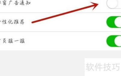 4、 最后将弹窗广告通知右侧的开关点击开启,变为绿色状态即可完成设置。