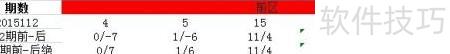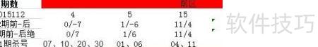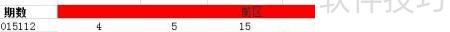 2、 以第2015112期为例,计算前区与后区号码的差值:将前区各数分别减去后区的4和11,得出结果为:4-4=0,4-11=-7;5-4=1,5-11=-6;15-4=11,15-11=4;19-4=15,19-11=8;28-4=24,28-11=17。