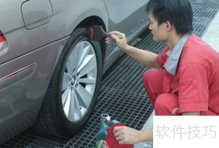 27、 为轮胎涂抹保护蜡,并用毛巾擦净钢圈和胎面。