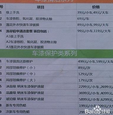 8、 洗车手工费19元,原价小车39元,SUV及商务车等大型车辆49元。