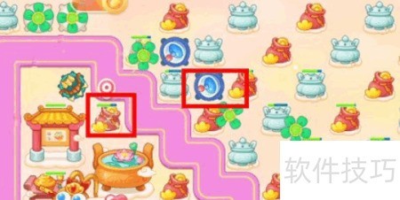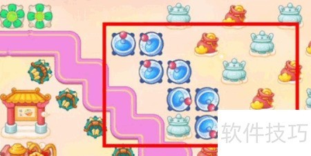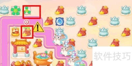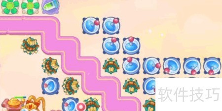 1、 开局时左上角放置满级风扇,中央设一级雷达,下方建一级毒针塔。风扇优先清除周边酒桌,首波滑板兔出现时,雷达立即锁定攻击。