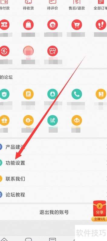 2、 进入个人中心,选择功能设置选项。