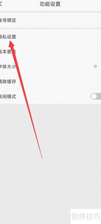 3、 进入功能设置,点击隐私设置选项。