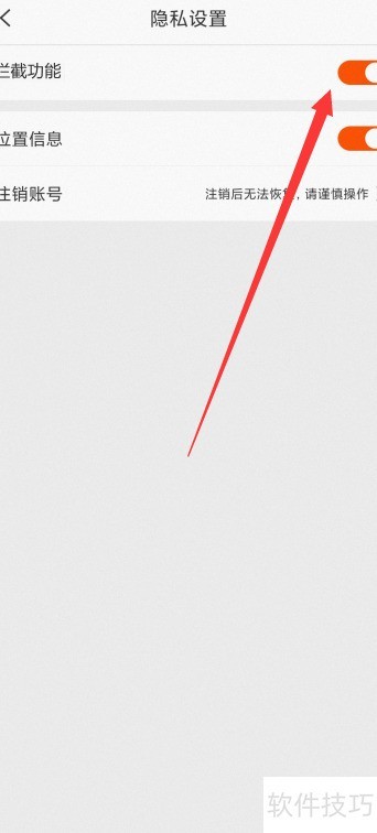 4、 开启隐私设置中的拦截功能即可。