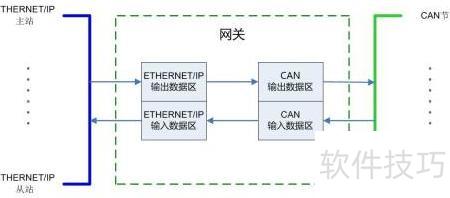 46、 网关从以太网/IP和CAN两端分别读取数据并存入对应缓冲区,通过内部交换缓冲区信息,完成两侧数据的相互传输与通信。