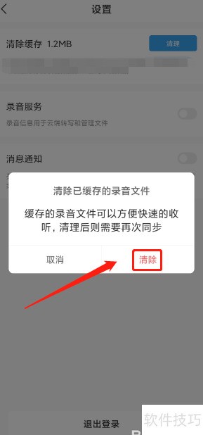 4、 进入清理缓存录音页面,点击清除按钮即可。