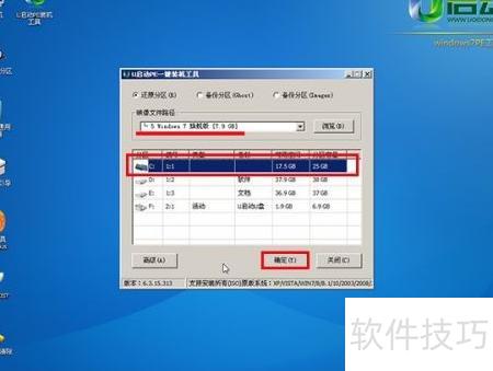 5、 选择C盘作为系统安装位置,点击确定继续操作,具体步骤见下图所示。