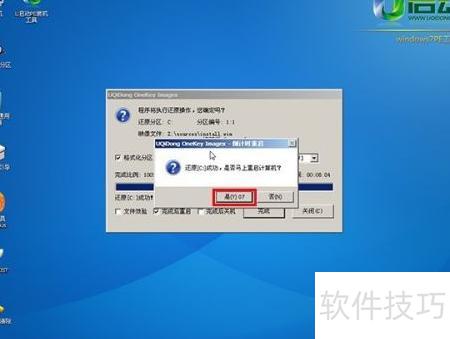 8、 释放完毕后将弹出提示窗口,询问是否重启电脑,可点击是立即重启,或等待10秒后系统自动重启。