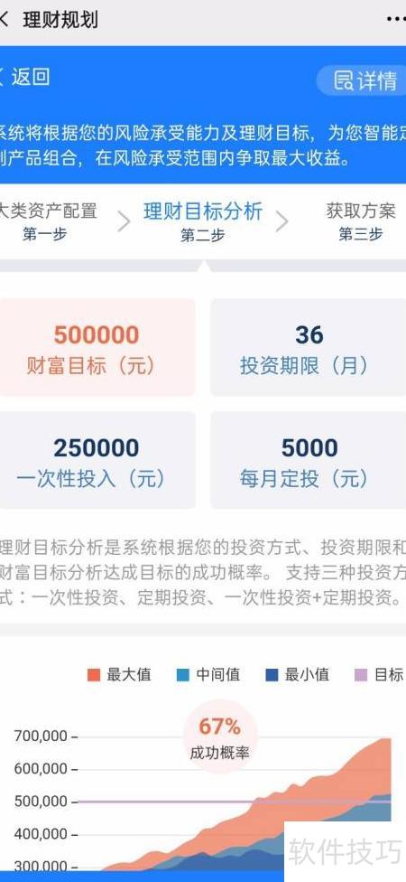 4、 进入理财规划页面,填写相关信息,借助金酷智能投顾与人工智能大数据技术,迅速获得个性化专属理财方案。