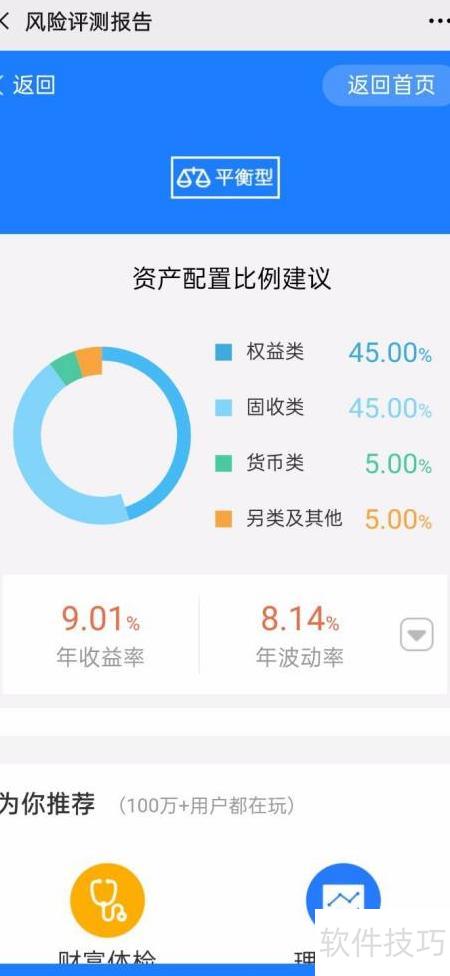 1、 首页直达财富体检、风险评估与理财规划功能。