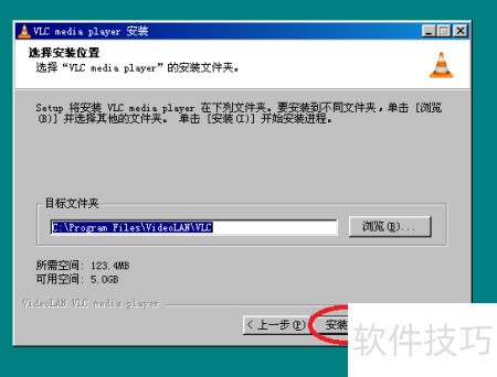4、 选择安装目录后,点击下一步即可开始将VLCPlayer安装到电脑。
