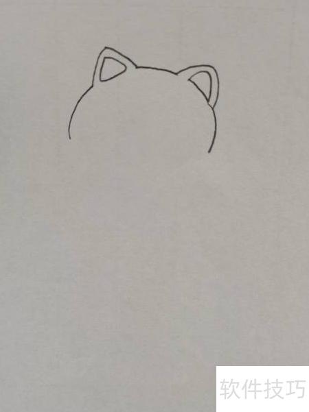 1、 先画盲盒花猫的头部与耳朵。