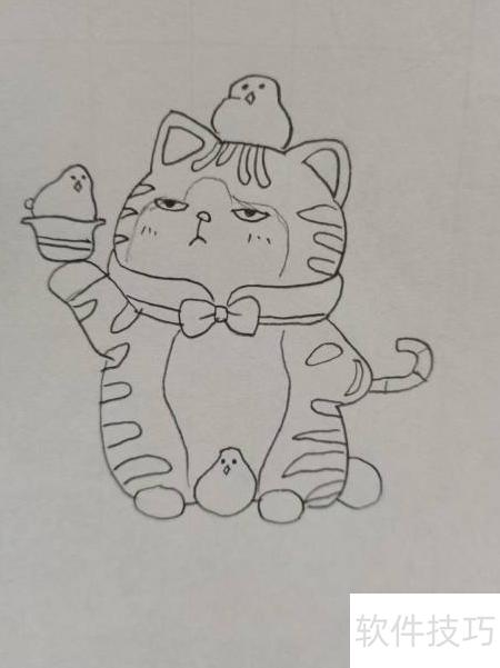 3、 接着画盲盒花猫的四肢和身体。