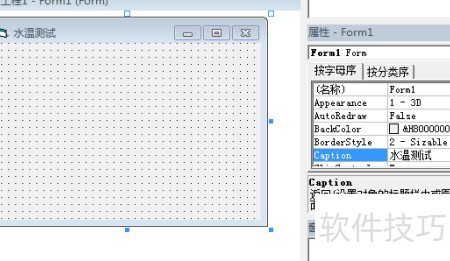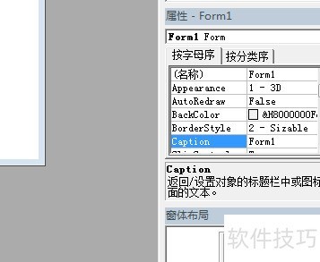3、 在窗体右下方的属性栏中,Caption 属性用于设置窗体标题,直接修改其对应文本框中的内容,即可更改窗体的显示名称。