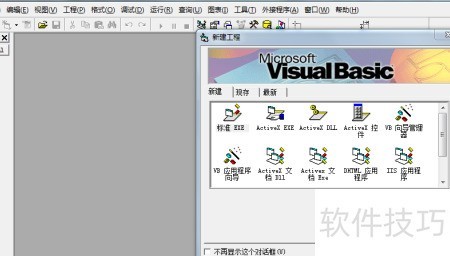 1、 双击启动VB6.0,选择新建项目对话框左上角的标准EXE,然后点击打开按钮即可进入开发界面。