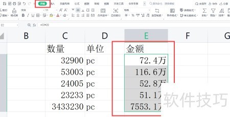 1、 启动WPS表格,选定数据列后,进入开始选项卡进行操作。