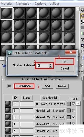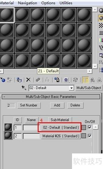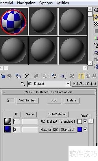 1、 按下M键可迅速打开材质编辑器窗口,选中第一个材质球后,点击标准按钮,在弹出的材质/贴图浏览器中选择多维/子对象材质类型,然后确认点击确定按钮完成设置。此操作可用于创建包含多个子材质的复合材质,适用于复杂模型的不同部分赋予不同外观。具体界面效果可参考对应图示,操作简便且直观,是进行精细化材质分配的重要步骤之一。