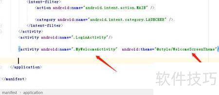 4、 在XML中配置自定义activity并应用相应主题。