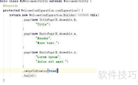 3、 创建一个类继承WelcomeActivity,重写configuration方法,通过该...
