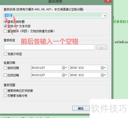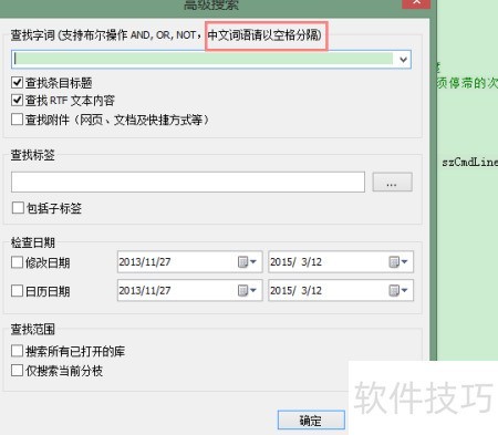 6、 打开窗口后,会出现中文搜索提示,要求中文词语之间用空格分隔。