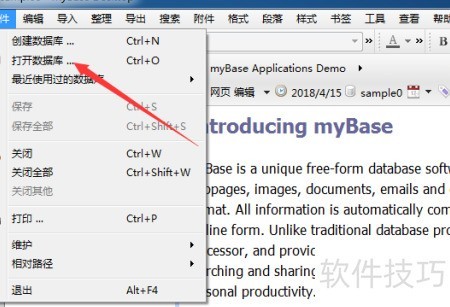 3、 点击文件菜单后,从下拉选项中选择打开数据库。