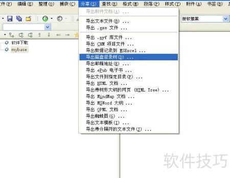 3、 打开已转换为HTML格式的nyf文件,选择分享菜单中的导出磁盘目录树选项。