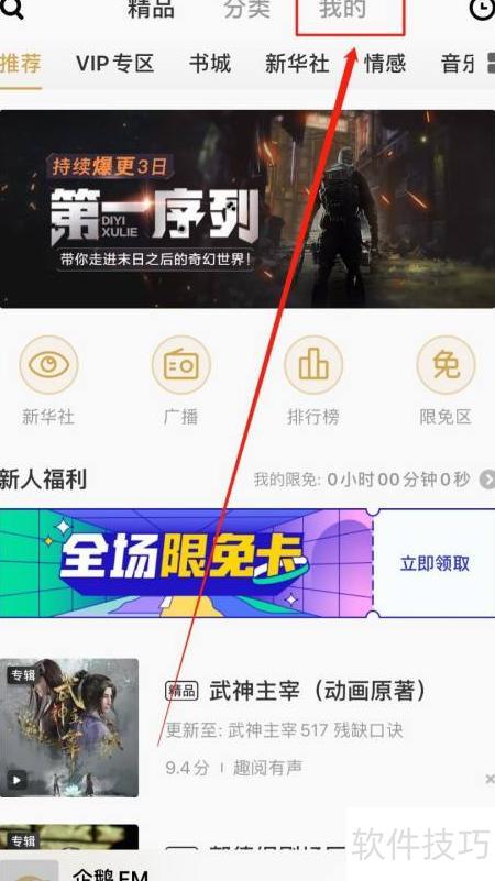 2、 打开企鹅FM应用,点击顶部我的进入个人页面。