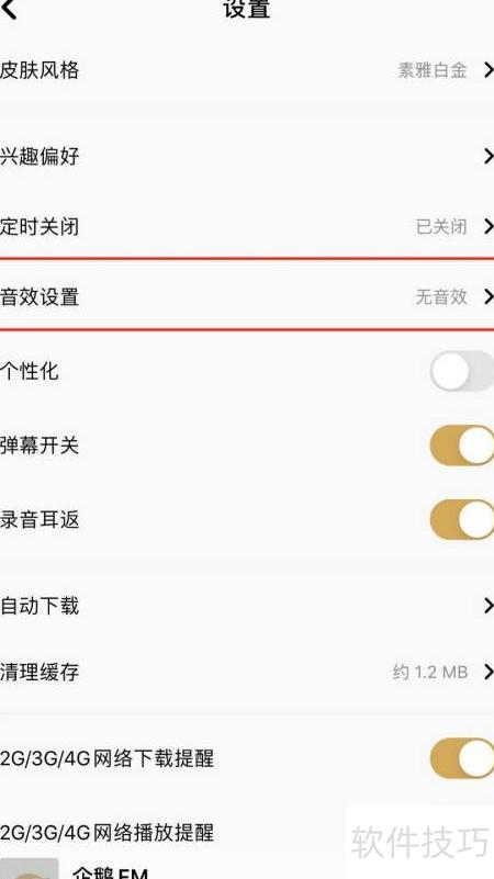 4、 进入设置页面,点击音效设置选项。