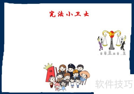 6、 在空白区域添加边框,便于书写文字,宪法小卫士手抄报制作完成。