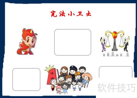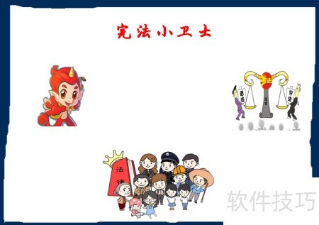 5、 在手抄报右上角画上宪法小卫士形象