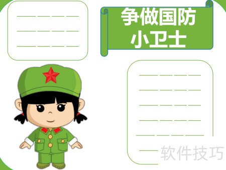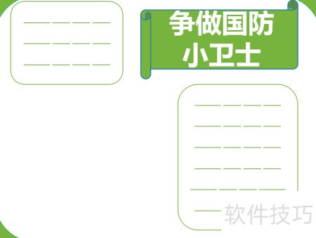 4、 在左上角绘制边框,并填写争做国防小卫士的主题内容。