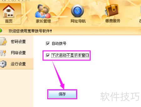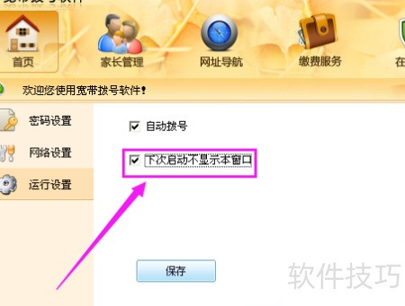 4、 勾选下次启动不显示此窗口,然后点击保存按钮即可。