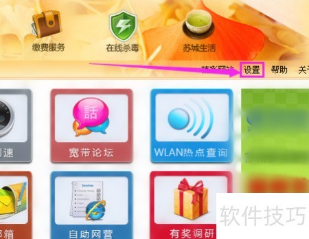 1、 打开宽带拨号软件后,点击首页右侧的设置按钮。