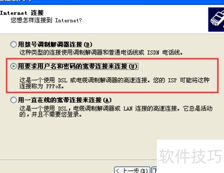 6、 选择需要输入用户名和密码的宽带连接,然后点击下一步继续操作。
