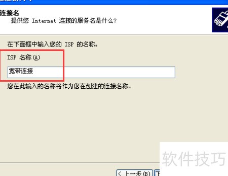7、 输入网络服务商名称,然后点击下一步按钮。