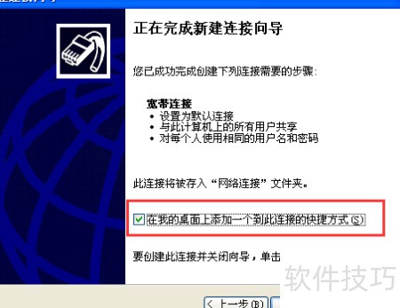 9、 勾选在我的桌面上添加此连接的快捷方式,然后点击完成即可。