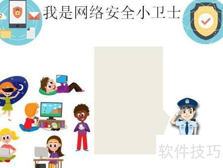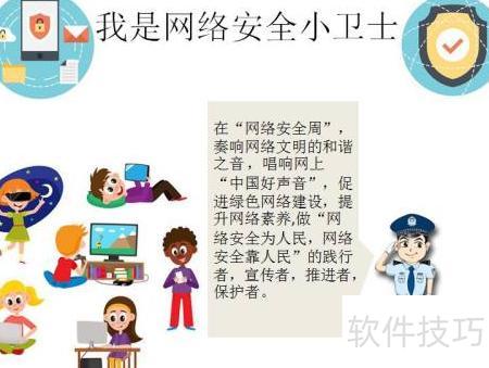 5、 右下角绘一穿制服的网络安全小卫士,与主题相呼应。
