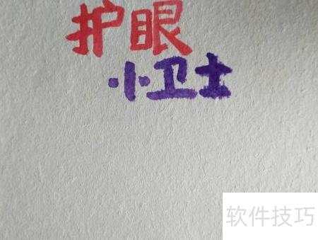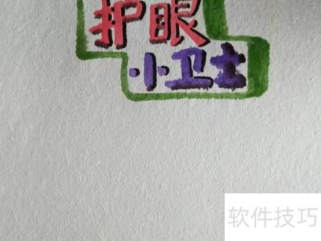 1、 用多种颜色分别书写护眼小卫士五个字作为第一步。