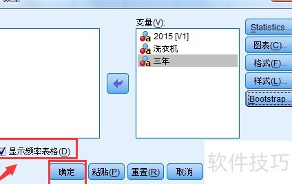 7、 请勾选显示频率表格,然后点击继续,系统将自动生成各项统计频率,具体操作七所示。