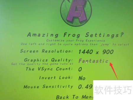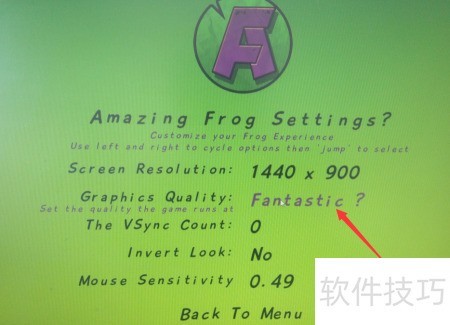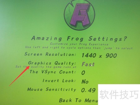 amazing frog是一款电脑游戏,启动后进入设置界面可调节画质,具体操作步骤如下流程所示。